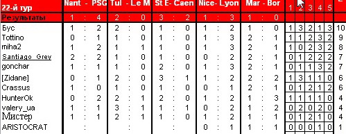 miha2 The person loving beer 05.02.09 #564 Нант - ПСЖ 1:2 Тулуза - Ле Ман 1:1 Сент - Этьенн - Кан 1:0 Ницца - Лион 1:3 Марсель - Бордо 2:1