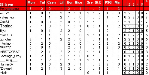 ARISTOCRAT модератор Модератор 13.03.09 #651 Монако - Тулуза 0-2 Кан - Лилль 1-2 Бордо - Ницца 2-0 Гренобль - Сент-Этьенн 1-1 ПСЖ - Марсель 2-1