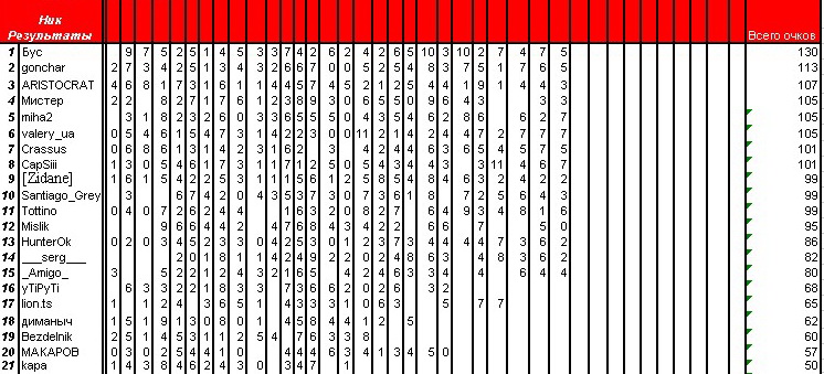 ARISTOCRAT модератор Модератор 17.03.09 #658 29й тур : Лилль - Гренобль Ницца - Кан Нанси - Монако Марсель - Нант Тулуза - ПСЖ тур будет закріт 21.03 в 19-00