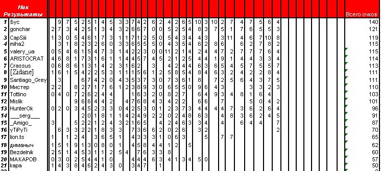 valery_ua Well-Known Member 08.04.09 #696 Ницца - Лорьян 2-0 Ле Ман - Сошо 1-1 Марсель - Гренобль 1-0 Лилль - ПСЖ 1-2 Лион - Монако 2-0