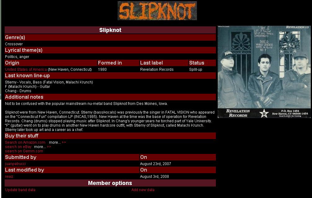 Вот решил ради хохмы проверить если группа Slipknot в базеYou must be registered for see links. Оказывается, есть!!!!