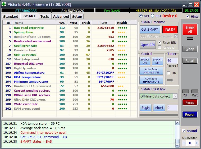 При обращении к одному из винчестеров периодически (очень редко) выскакивает "синий экран смерти" и происходит перезапуск операционной системы. SATA-винт после этого не сразу обнаруживается.