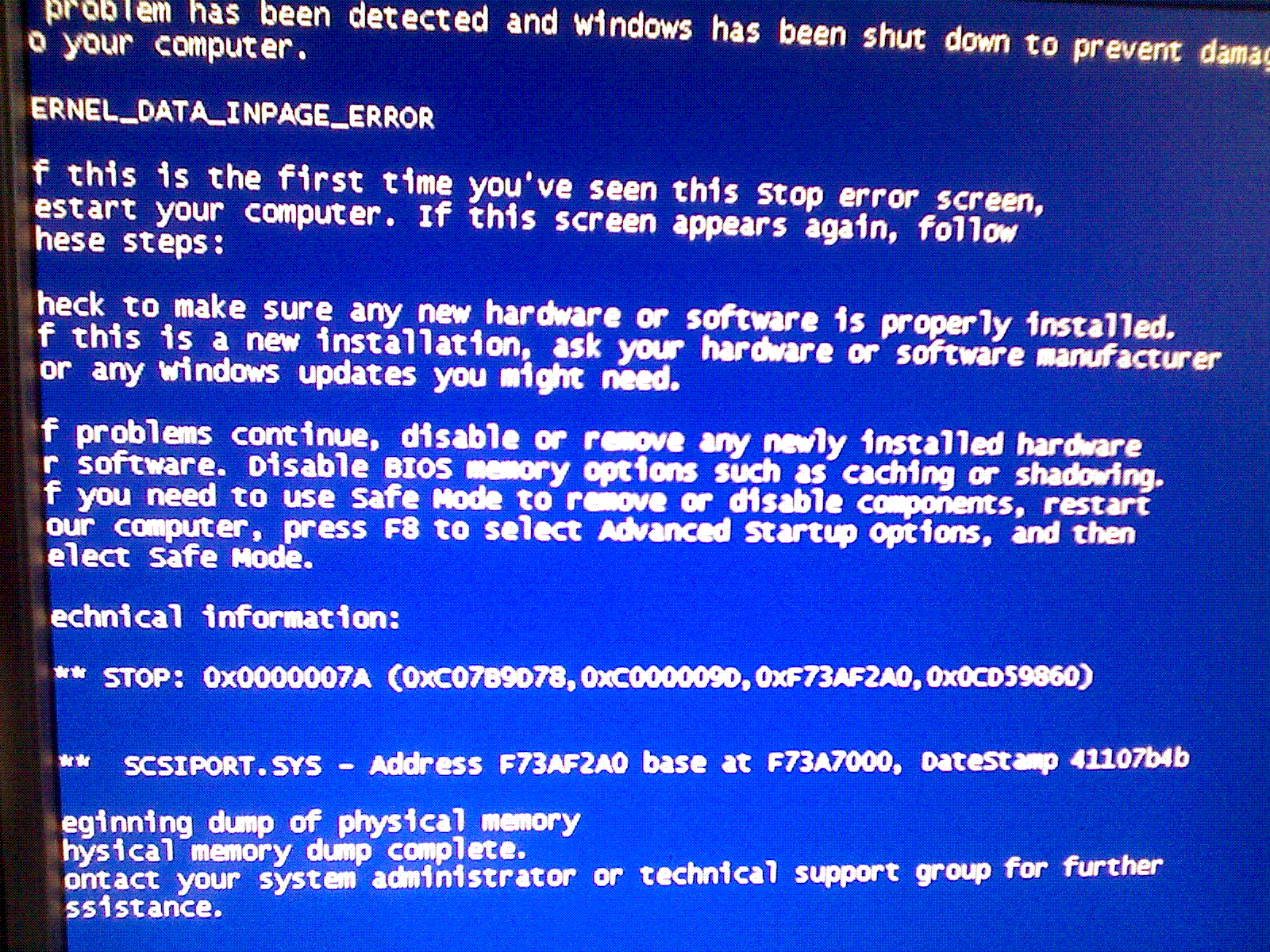 Был сфотографирован экран ошибки: