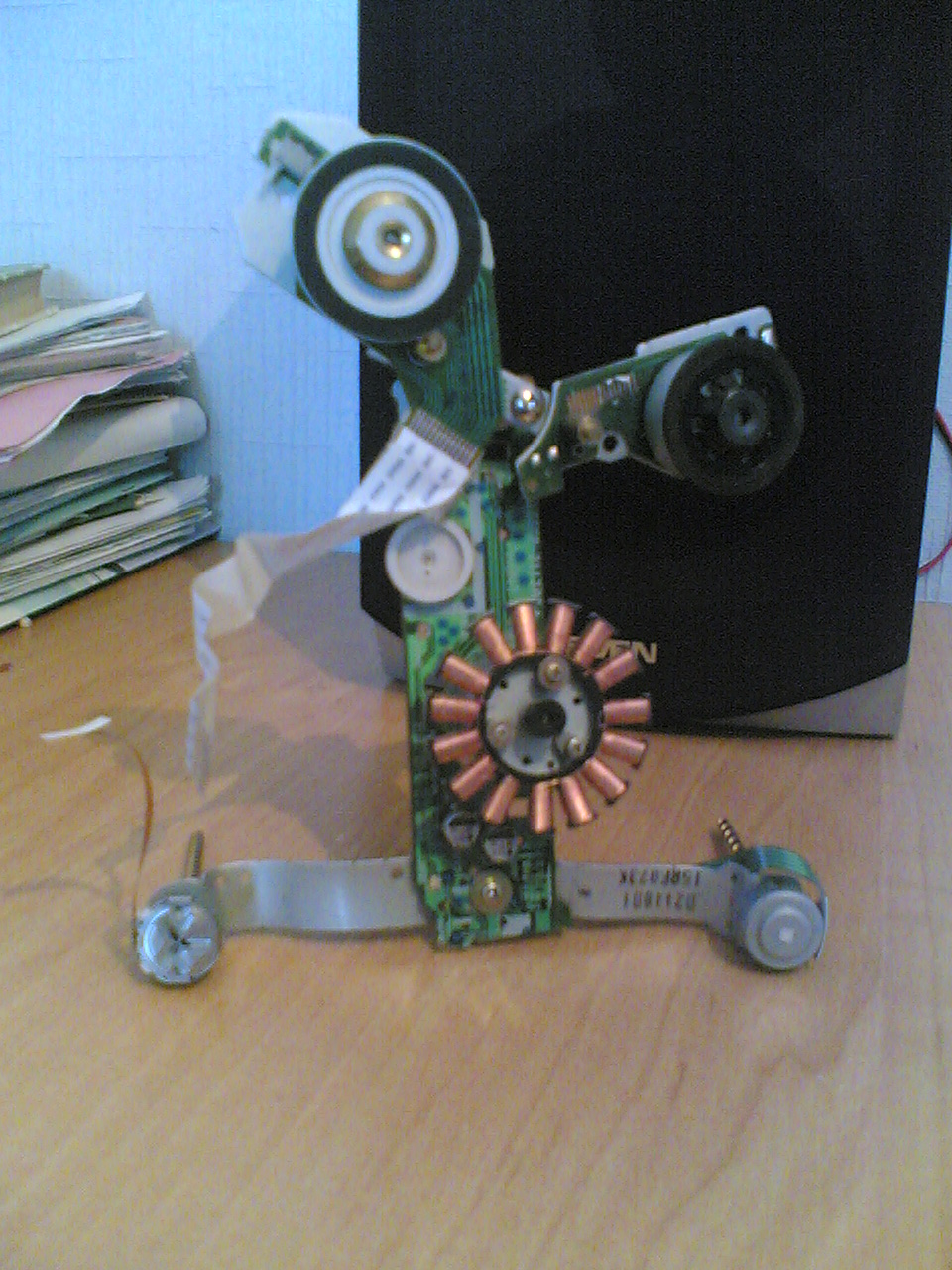 неее токо развлекать/пугать гостей своим видом :shock: котушку и пластины черные которые раскручивают диск можно пальцем повертеть... ножки сзади это шнековая направляющая которая двигает головку привода от центра диска к краям при чтении