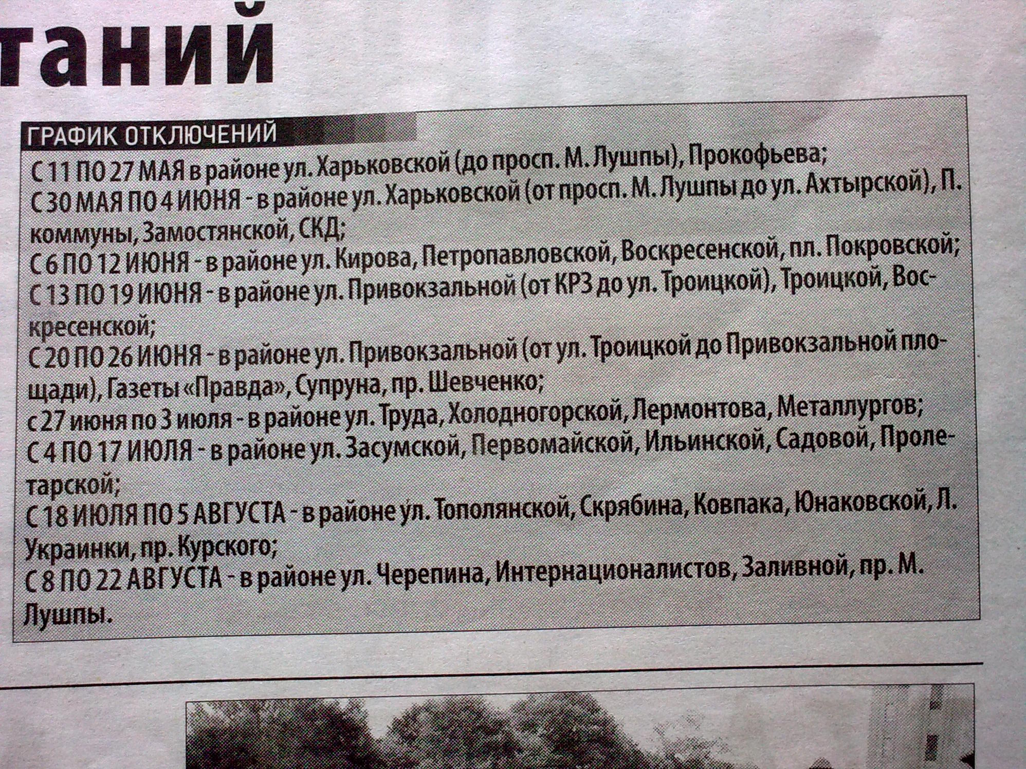 моя улица по плану - 18 июля- 5 августа, хотя воды не было уже 11 мая, недели на две....классные планы....А может просто плановое отключение воды....