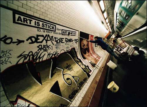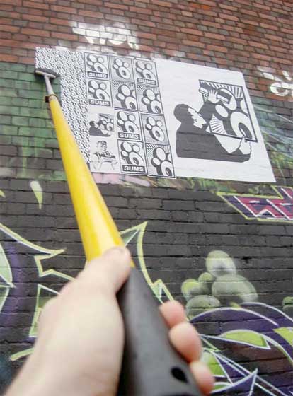 Меня,лично,не совсем устраивает самоклеющаяся бумагатакие стикеры нужно клееть в более "аккуратных" и сухих местах,а клеем тож нормальный вариант,ничего позорного в этом нет! Тем более если делаешь стикер приличных размеров(более чем А4(постер)),то клейкую бумагу таких размеров найти трудновато,да и дороговато выйдет...хотя если средства позволяют,то можно..вот пару примеров что наносят с помощью клея.