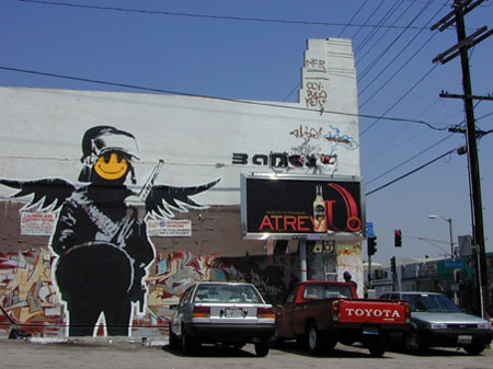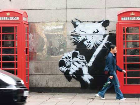 Banksy воспринимает город как альтернативное современным медиа информационное поле, и использует его территорию как художественное полотно для идеологической войны. Оружие Banksy – граффити при помощи трафарета. Своими работами художник выражает протест войне, капитализму, засилью рекламы, угнетениям животных и подобным темам, волнующих современную леворадикальную молодежь.