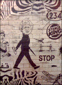 Митець прикрасив стіни тунелю поблизу станції Waterloo своїми трафаретними графіті, які вважаються особистим почерком Бенксі. На одному з них - англійський hoodie (вуличний молодик кримінальної зовнішності з каптурем на голові) з ножем у руці.
