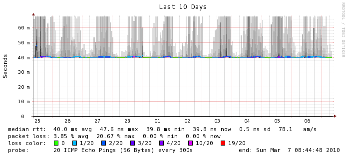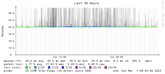 Тоже заметил посдедний месяц серьезные проблемы с инетом, потери пакетов, проблемы с пингом. Юзать скайп, играть онлйн нереально было вообще. Так же как и у автора темы потери были в среднем 15-20%. Говорили что its-chereda.sm.chereda.net не обязан отвечать на все пинги и и.т.д. Звонки в службу поддержки ничего не изменили, у них все нормально какбы работает. Хотя по всем тестам, да и наглядно были серьзные задерки. Ну ладно, вспомнил о том, что в сети безлимитка(хоть и 128, но стабильно(если это можно так назвать)). Ну вот гдето неделю назад случилось чудо - череда начал работать стабильно!!!