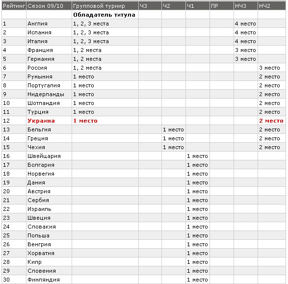 Напоследок, для наглядности, таблица с раскладкой, кто откуда стартует со следующего сезона, с расположением команд для сезона 2009/2010 годов. (фото № 1)