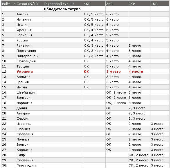 Напоследок – обещанная таблица с раскладкой, кто с какого раунда стартует, с расположением команд для сезона 2009/2010 годов. (фото № 2)