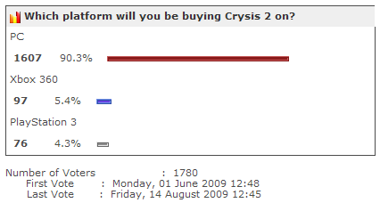 И с чего же ты сделал такие выводы? XBOX и PS3 это вообще отдельная тема. Они при портировании не тянут этот Crysis выше средних, поэтому как собирается Crytek вести создание второй части я лично могу только догадываться. А PC-версия Crysis 2 судя по всему будет на высоте во всех аспектах. Время покажет...Честно говоря, печально видеть, как крайтековцы зациклились на визуальной стороне проекта Crysis, которая к тому же с новым движком будет выглядеть хуже предыдущей.