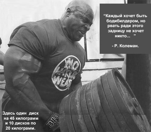 “Каждый хотел бы иметь формы бодибилдера, но рвать ради этого задницу не хочет никто”. Ронни Колеман.