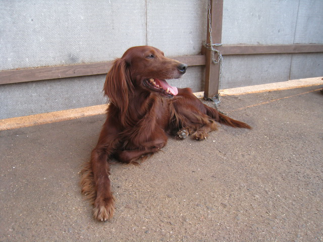 Ирландский сеттер, кобель, возраст предположительно около 5-6 лет.