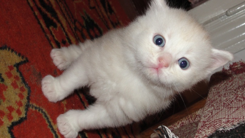 Полупородистый Котёнок - 4 месяца. Белый и пушистый /в полном смысле слова//// с глазами разного цвета.играется - до устали)))