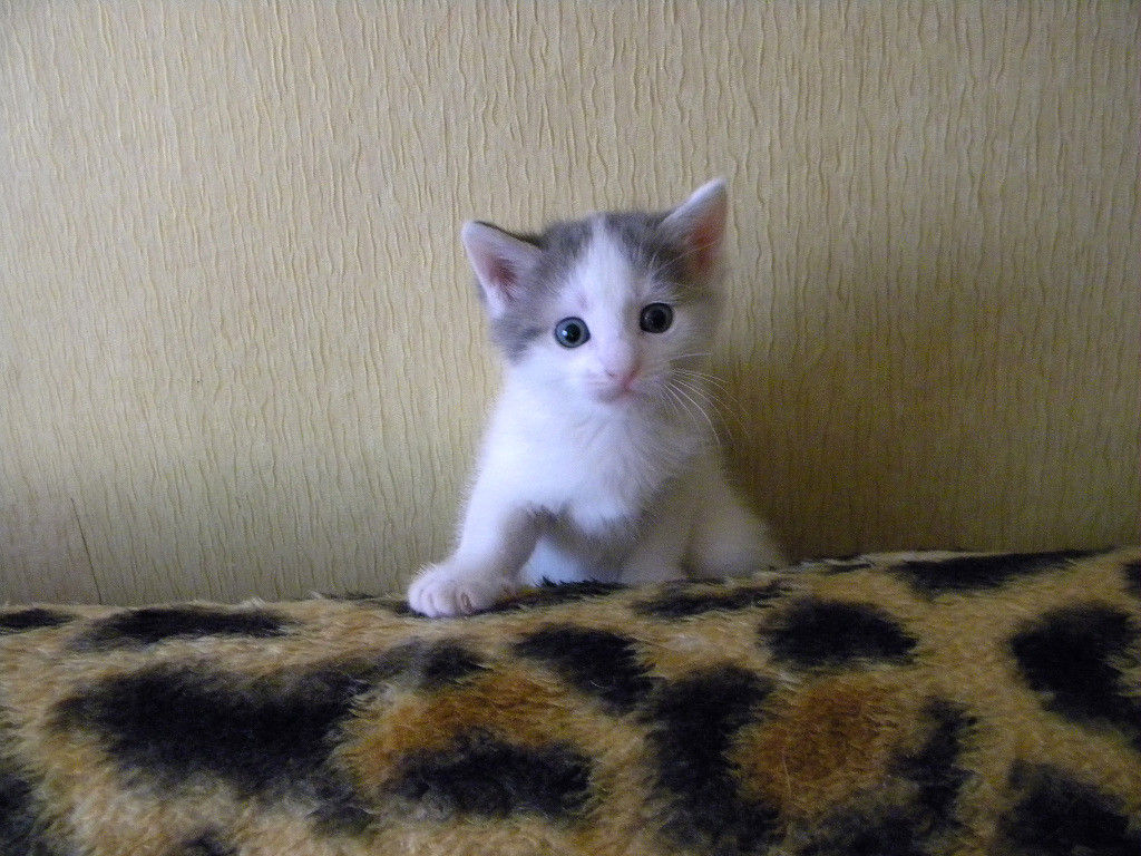 оттенка с белой грудкой и в белых носочках,сидит почти всегда под торговым киоском, как будто ждет кого-то.