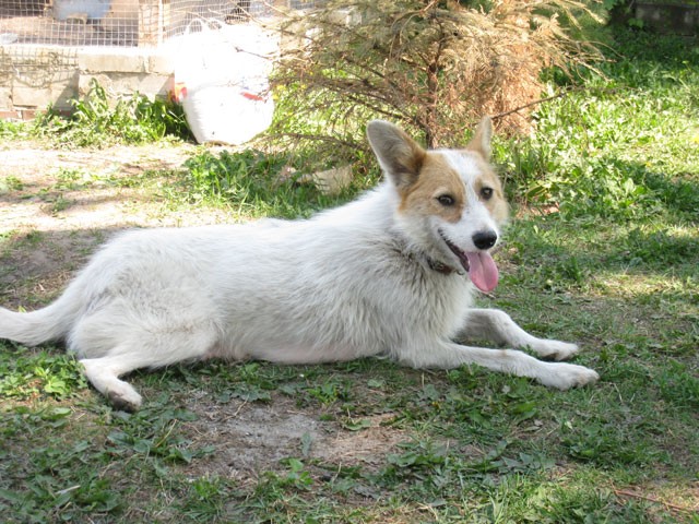Эльза – белая в рыжих пятнах, среднего размера, здоровая, стерилизованная собака: милая, общительная, внимательная, смышленая дворняга; отсутствует часть задней лапы, но это не мешает ей быть шустрой и подвижной.