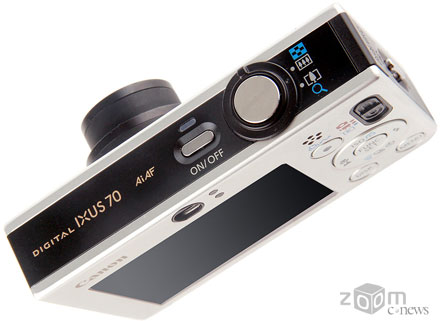 Внешность у IXUS 70 более скромная и строгая в сравнении с ультракомпактами конкурирующих компаний. Тем не менее, камера получилась очень элегантной и хорошо смотрится в руке. Когда берешь IXUS в руки, металлический корпус дает уверенность в надежности. Несмотря на простоту, этот «железный кирпичик» оставляет приятное впечатление.