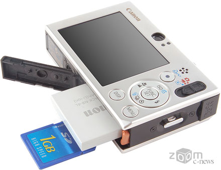 Аккумулятор и карта памяти стандарта SD расположены под общей крышкой в одном отсеке. Заряда аккумулятора хватает на 200 снимков
