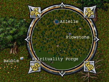 Следующий шаг - посещение крощечной эльфийки Arielle (бабочка). Она находится к северо-западу от порта "духовенство" около водоема. Она пожелает, чтобы вы принесли ей 3 безделушки. Безделушки можно найти на земле к западу от местонахождения эльфийки (голубые камешки).