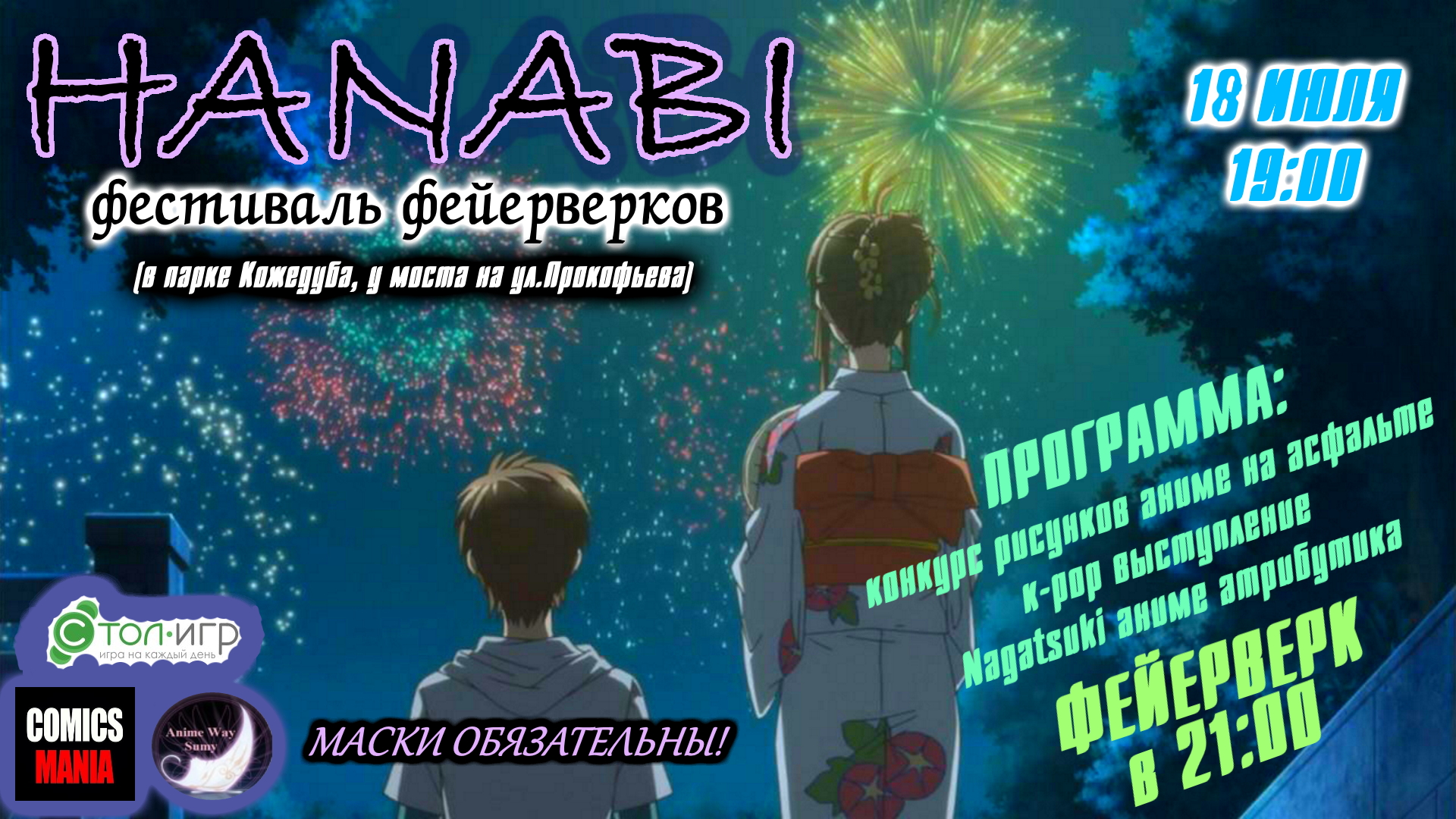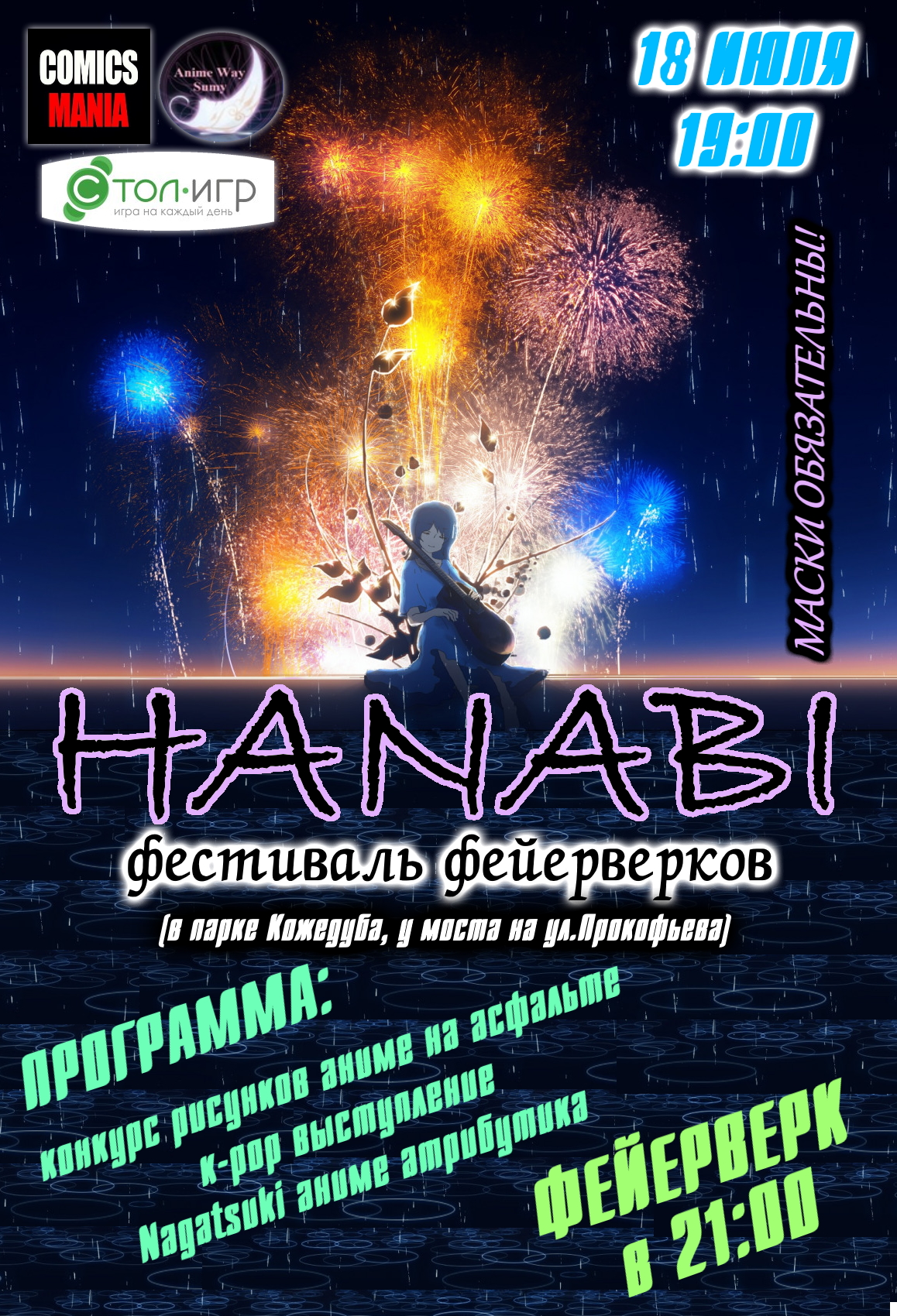Фестиваль огня 2020. Приглашаем анимешников и кпоперов на мероприятие Фестиваль огня 2020. Дата и время - 29 августа, на 18:30. Место - парк Кожедуба, возле моста по ул.Прокофьева. Маски обязательны! Косплей приветствуется.