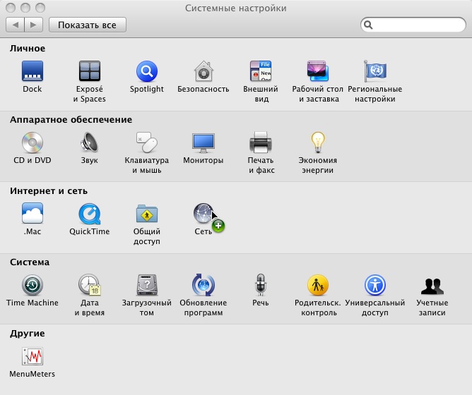 нажать на значок "Сеть".