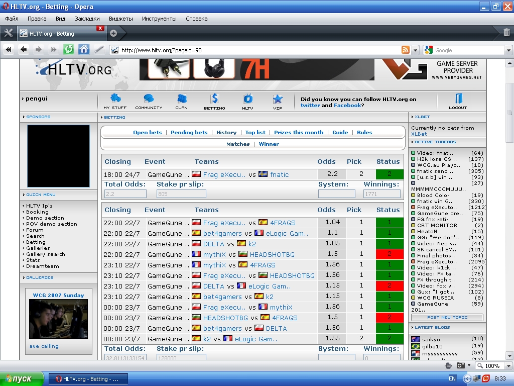 C0opeR pengui 24.07.10 #303 Me1n сказав(ла): You must be registered for see images attach Одни расстройства =((( Натисніть, щоб розгорнути... таже фигня ))))) You must be registered for see images Сейчас на счету так и осталось 1771 Вкладення bets.jpg 566.6 КБ Перегляди: 1 461 Останнє редагування: 25.07.10