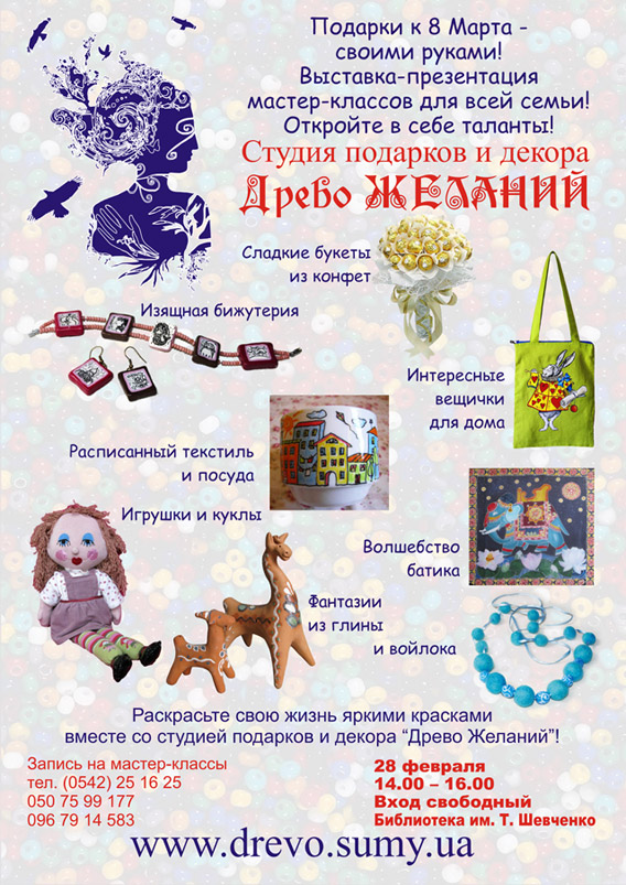 Студия подарков и декора "Древо желаний" приглашает взрослых и детей на выставку – презентацию творческих мастер-классов: