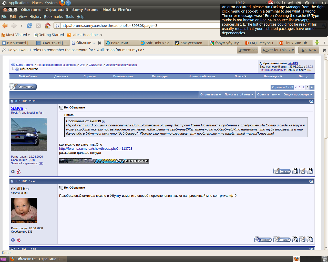 В общем перебил я Убунту и снова столкнулся с этой проблемой.Устанавливал с заказаного диска Ubuntu 10.04 LTS Desktop Edition.Как только установил,то сразу скачал языковые пакеты.Убунта стала на русском.После перезагрузился и появилось вторая версия ядра.Теперь их два.В новую когда захожу,то снова белый экран.В старую не всегда,но тоже бывает.Это может быть как-то связано с моей видухой ати Радеон х1600?Слышал,что у Линукса проблемы с АТИшными видеокартами.Дрова на видуху не качал.Предположил,что они сами установились.Помогите решить проблему.Желательно по подробней,так как ещё ламер в данном вопросе))Не охота всю жизнь на винде сидеть.Понравилась мне эта Убунта