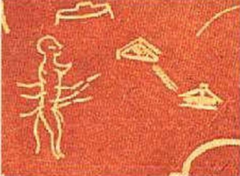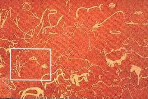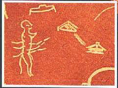 На заре человечества первобытные люди на камне отразили запомнившиеся события, дошедшие до наших дней. Авторы рисунков достаточно ясно передали увиденное ими неординарное событие. Приведенные картины однозначно указывают на происходившие контакты. Одна из них отразила визит НЛО. Рис. 2. Возраст этой картины насчитывает около 15 000 лет. И самих астронавтов, сияние, окружающее головы пришельцев можно интерпретировать как поля защиты от микроорганизмов иной биосферы. Рис. 3. С развитием