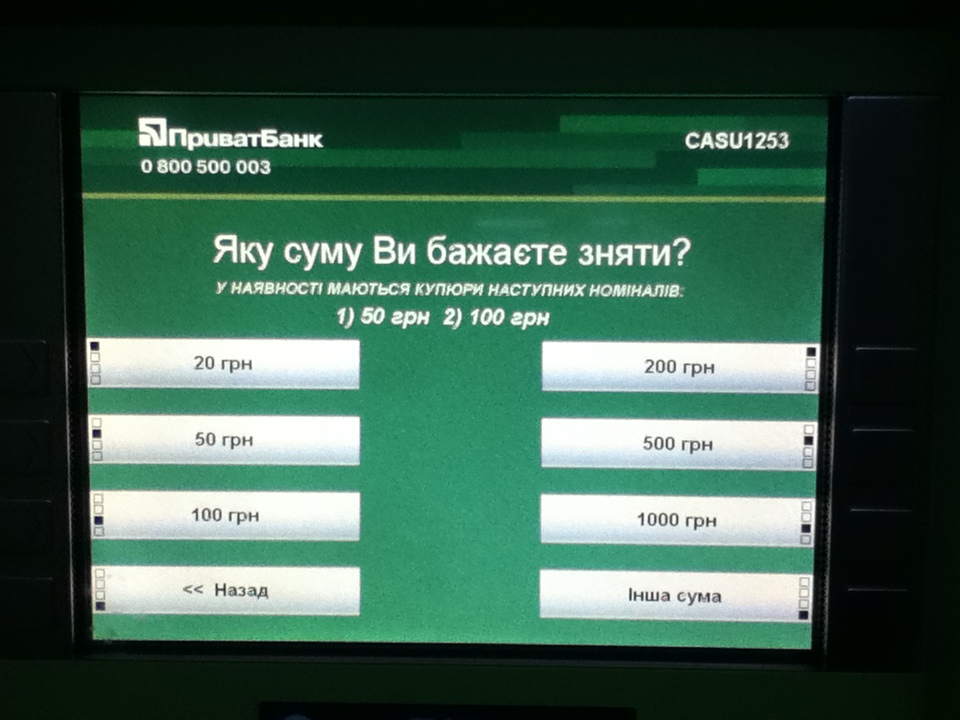 Может и я ошибаюсь (редко пользуюсь приватовской карточкой), НО:Мда, мне только что подтвердили и реальные сотрудники, что банкомат этого банка не показывает наличие купюр.