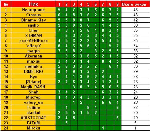xxxFAFNIRxxx Вечный студент :) 13.09.10 #186 Результаты: Волынь - Севастополь 1-0 Таврия - Арсенал 0-1 Металлург Д - Кривбасс 2-2 Ворскла - Днепр 0-2 Ильичевец - Карпаты 2-3 Вкладення 9.jpg 104.1 КБ Перегляди: 285 itog.jpg 66.5 КБ Перегляди: 249