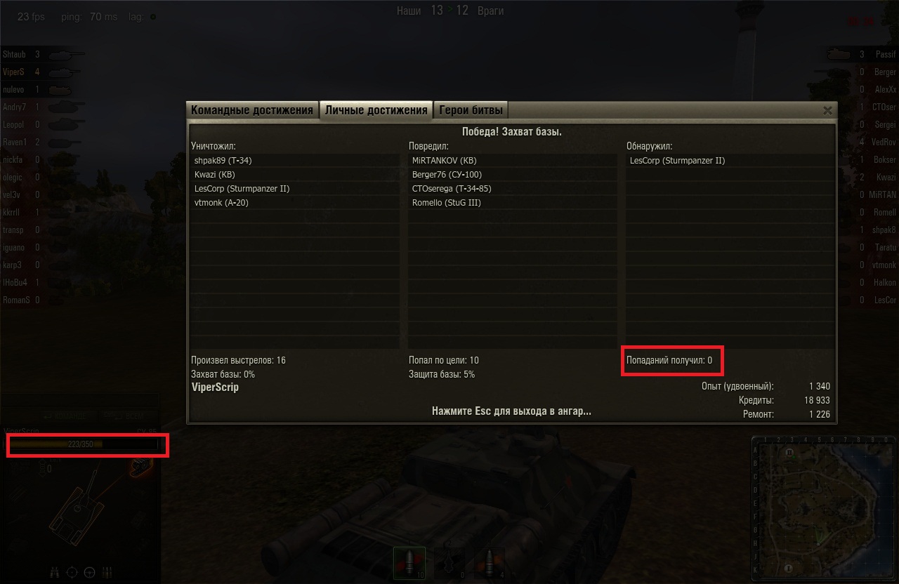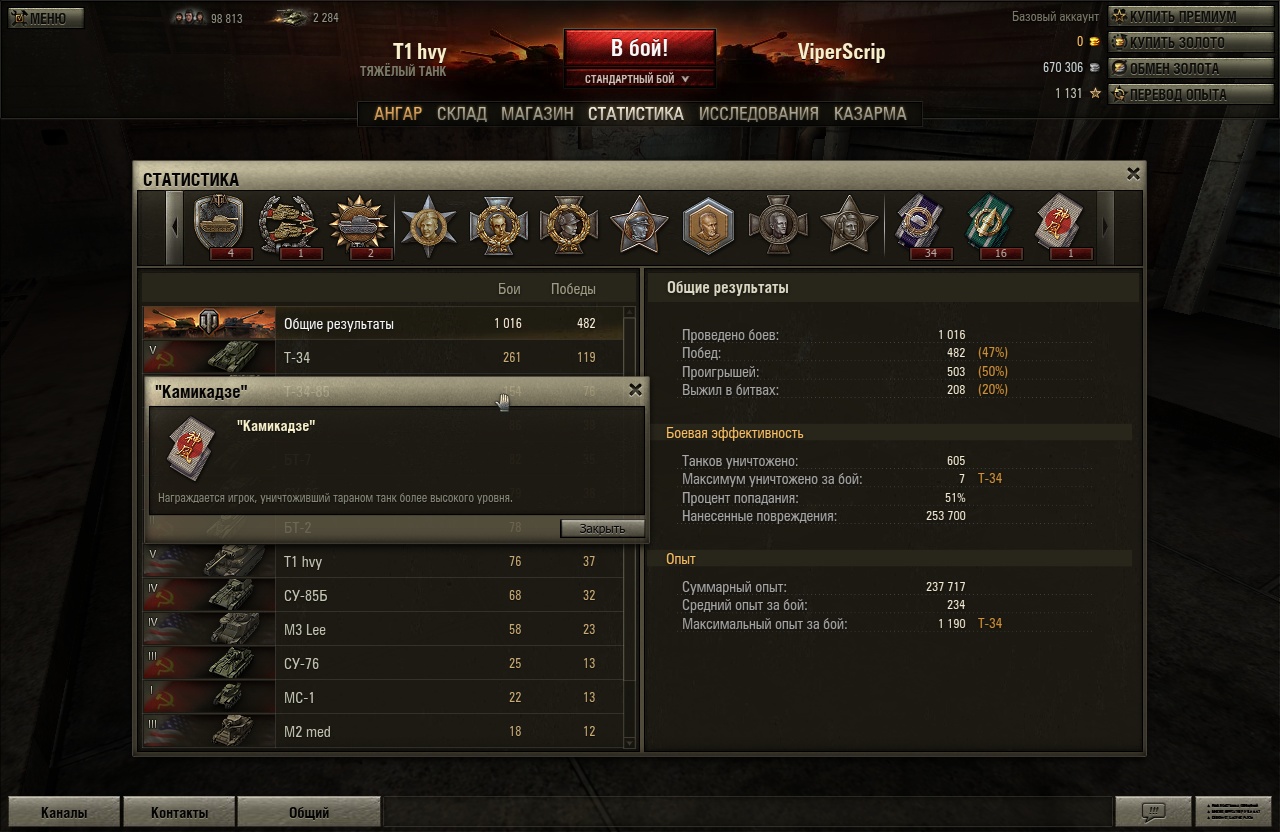1 - своим т1 пошел на таран с т3485. итог - получил медальку =)