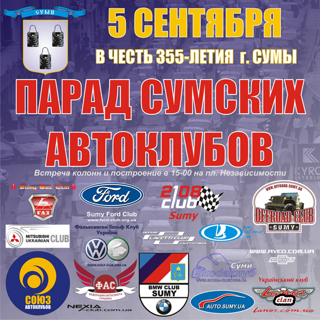 Активная часть сумских автомобилистов, в честь празднования дня города, проводит Парад сумских автоклубов! Такого в нашем городе еще не было! Спешите видеть!
