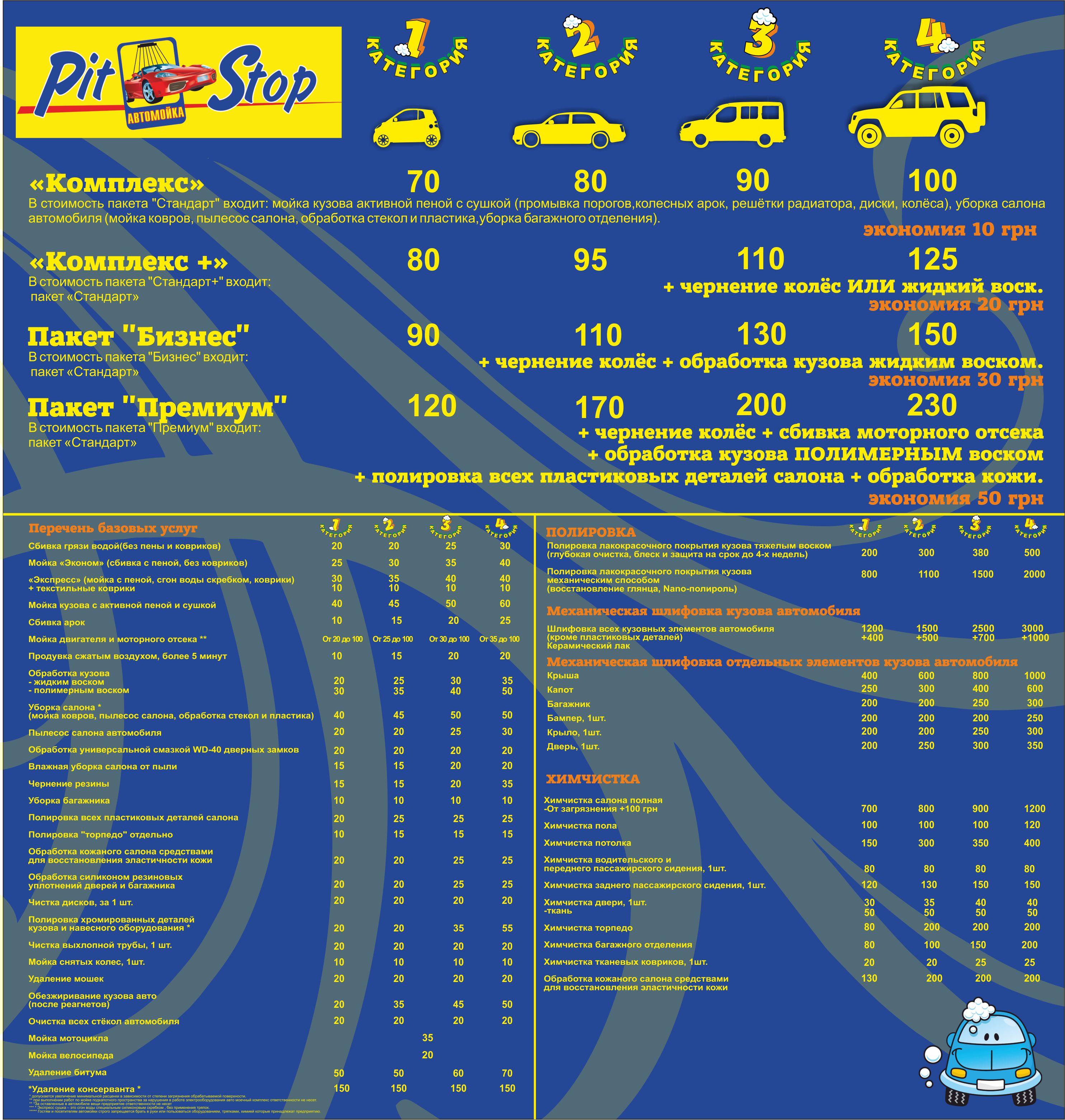 Тогда вопросов нет, я ваш навекиДа комплекс легкового авто 2 категории стоит 80 , сбивка полкапотного от пыли и легкого масла до 100 грн , если просто сбить водой от пыли то 25 грн. Если масло и грязь то 100.